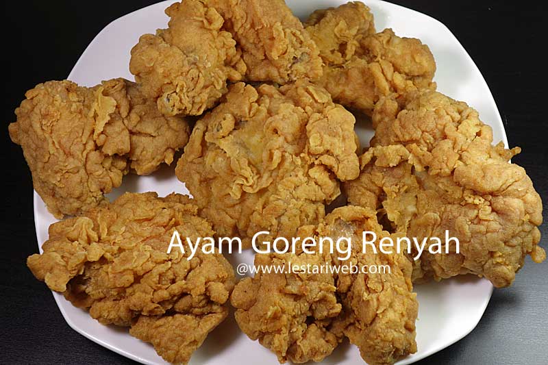 - Ayam Goreng Renyah ini bertahan untuk 1 hari. Ayam goreng yang sudah dingin bisa anda panaskan di dalam oven dengan suhu 150°C selama 15 menit atau digoreng sekali lagi supaya bisa renyah kembali.
