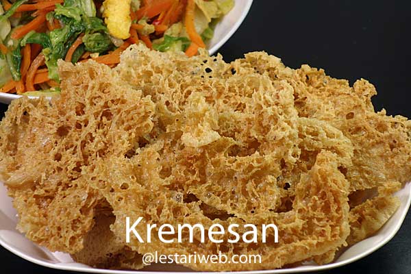 Kremesan, remah kriuk-kriuk dan gurih ini sering kita jumpai dalam hidangan ayam goreng tradisional dari Jawa Tengah dan Jogja misalnya Ayam Goreng Kremes,