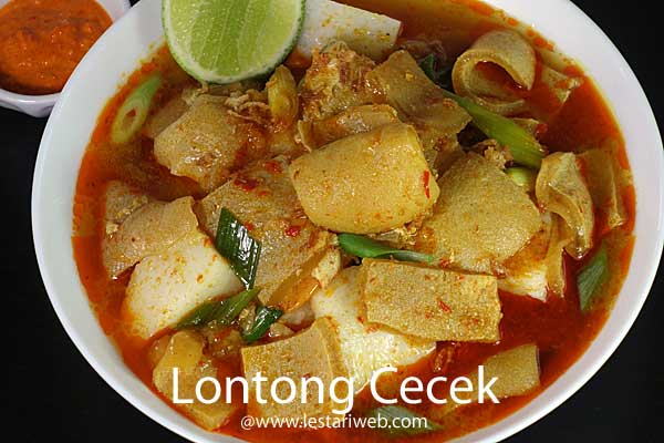 - Letakkan potongan lontong atau ketupat dalam mangkuk saji. Siramkan kuah dan potongan cecek.
