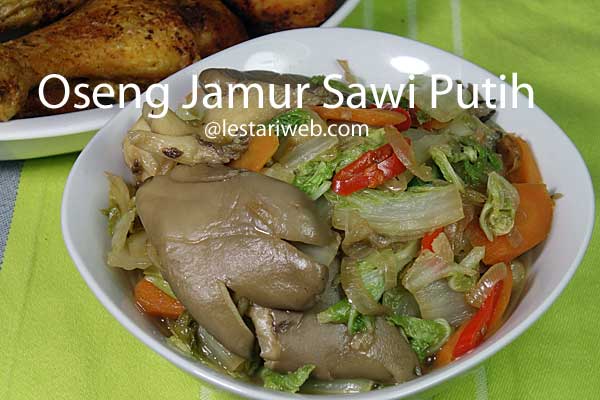 Asal: Jawa Indonesian makanan utama Oseng Jamur Sawi Putih, resep, asli, Indonesia, step-by-step