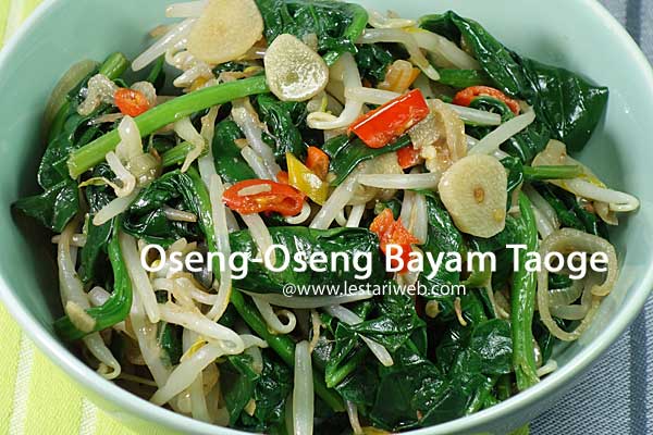 Asal: Indonesia Indonesian lauk pauk Oseng-Oseng Bayam Taoge, resep, asli, Indonesia, step-by-step