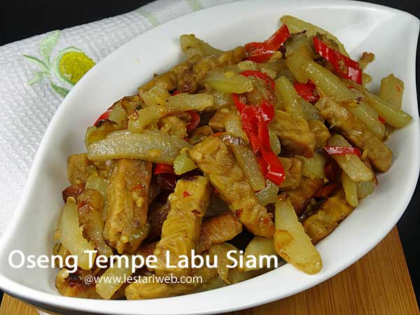 Asal: Jawa Indonesian makanan utama Oseng Tempe Labu Siam, resep, asli, Indonesia, step-by-step